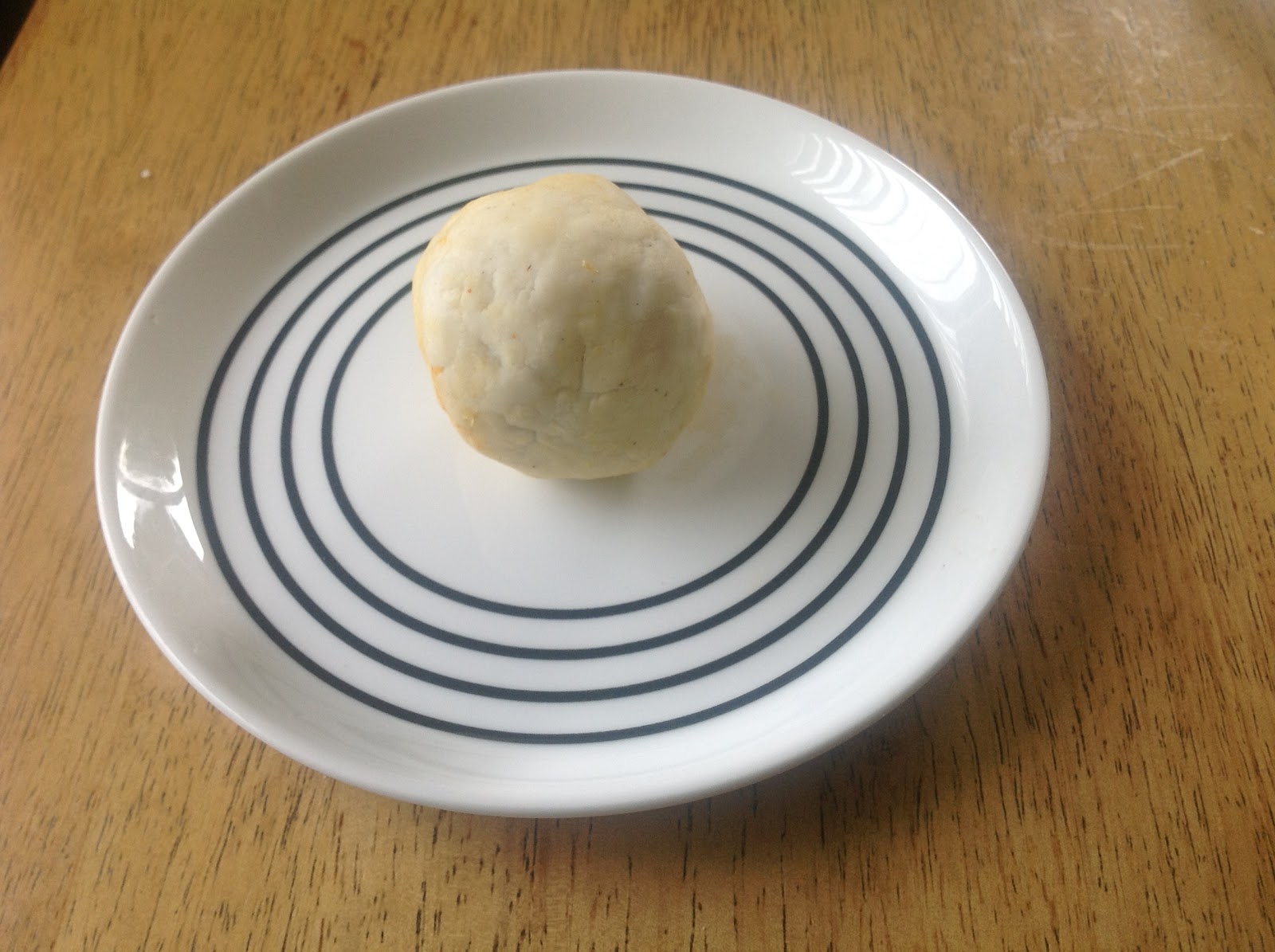 5. Make lemon size balls out of the dough and pat them into small disc . Add 1 tbsp prawn/ chemmeen masala into it and make a small ball as below.