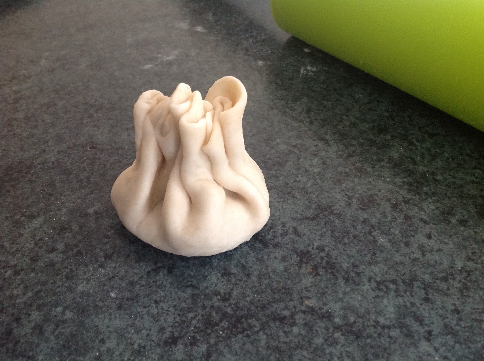 6. Make small balls from the dough and roll out into a small puri shape. Add little prepared masala in the centre.