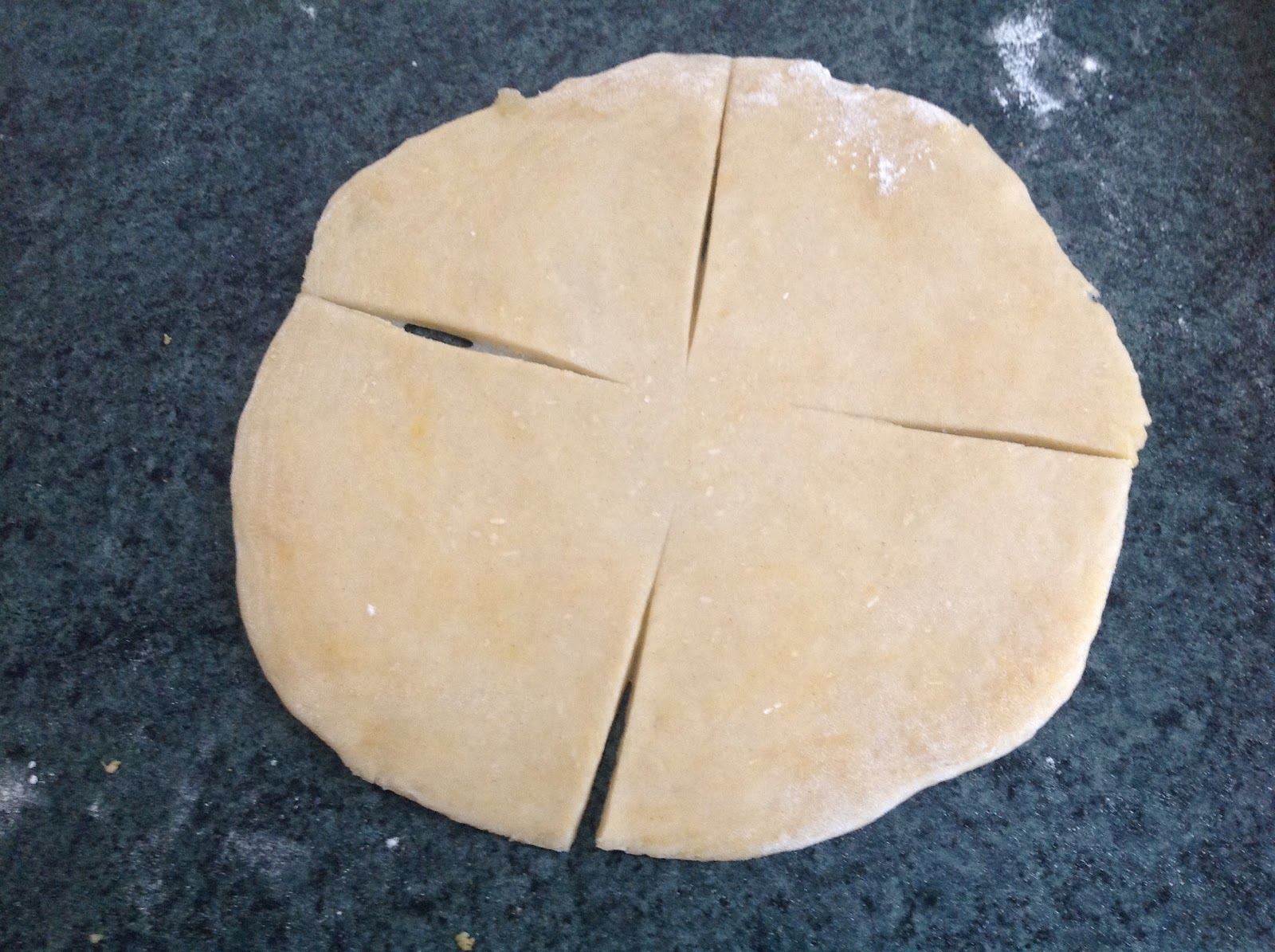 - Divide the dough into 8 equal balls and roll out each ball to about 4" diameter disc.