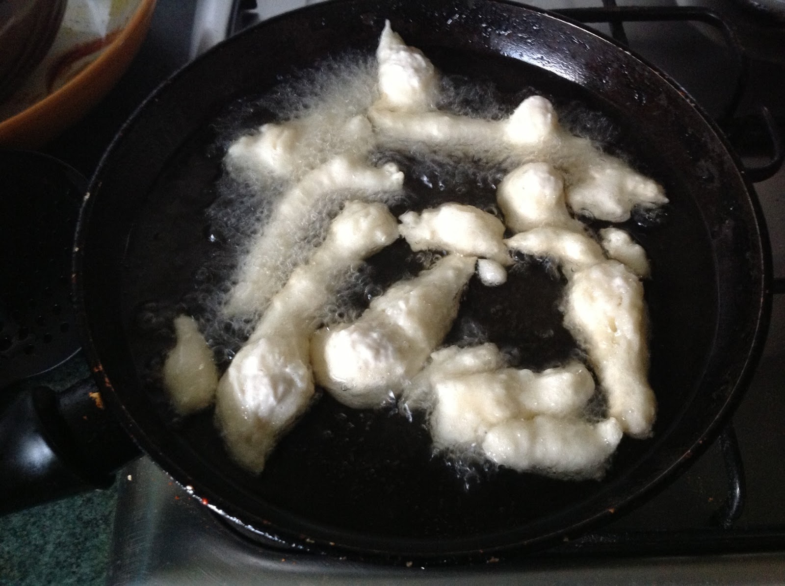 3. Heat oil in a pan. Take the batter in your hand and squeeze it on the hot oil in the shape of tamarind.